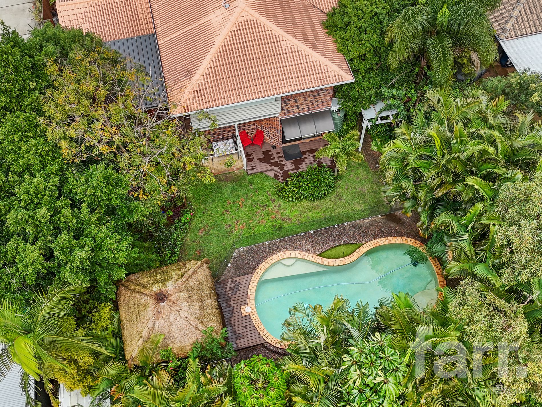 - Sparkling pool & Bali hut with glass fencing